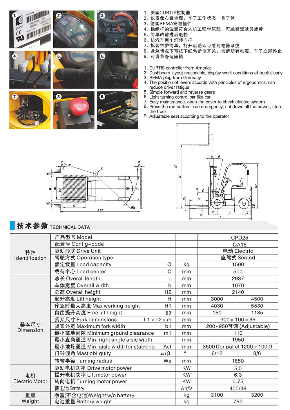 CPD25-QA15四支點(diǎn)平衡重電動(dòng)叉車