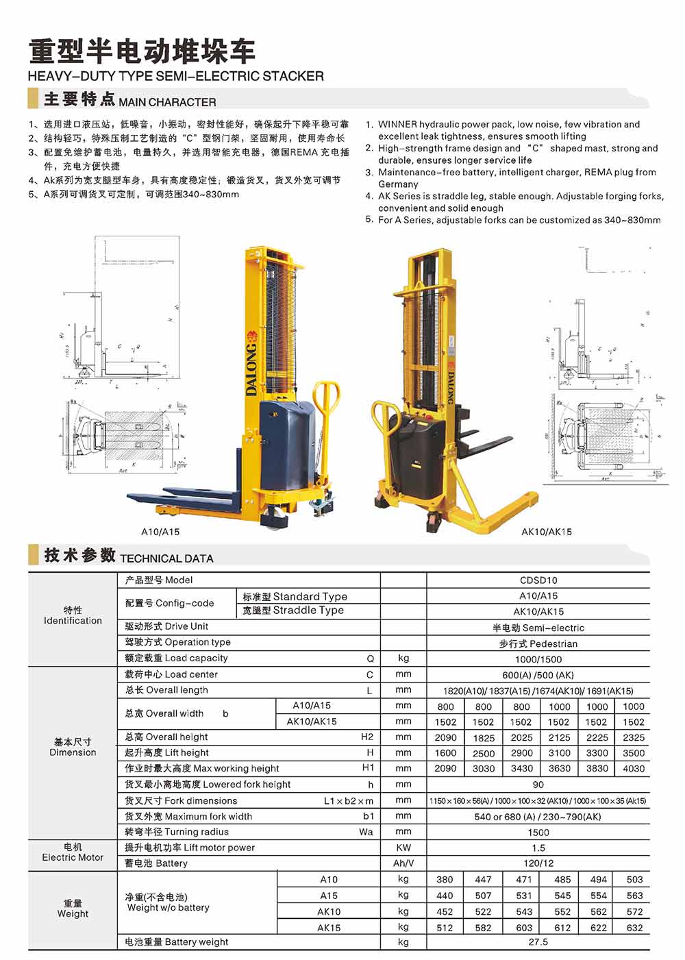 無錫大隆電工機械有限公司主營電動叉車,手動搬運車,電動堆垛車,電動搬運車等,規(guī)格達上百種,多次通過國家質(zhì)量技術(shù)監(jiān)督部門的質(zhì)量鑒定,信譽高,值得選購!