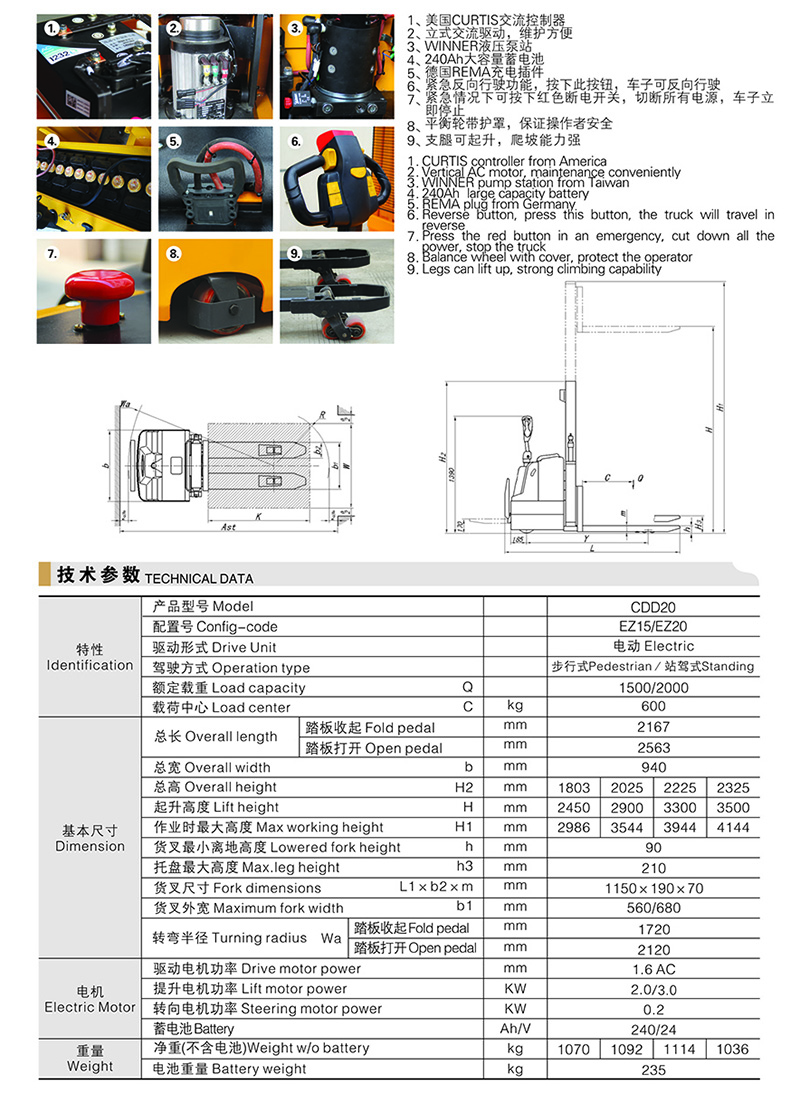 CDD20-EZ雙托盤(pán)全電動(dòng)堆垛車(chē)