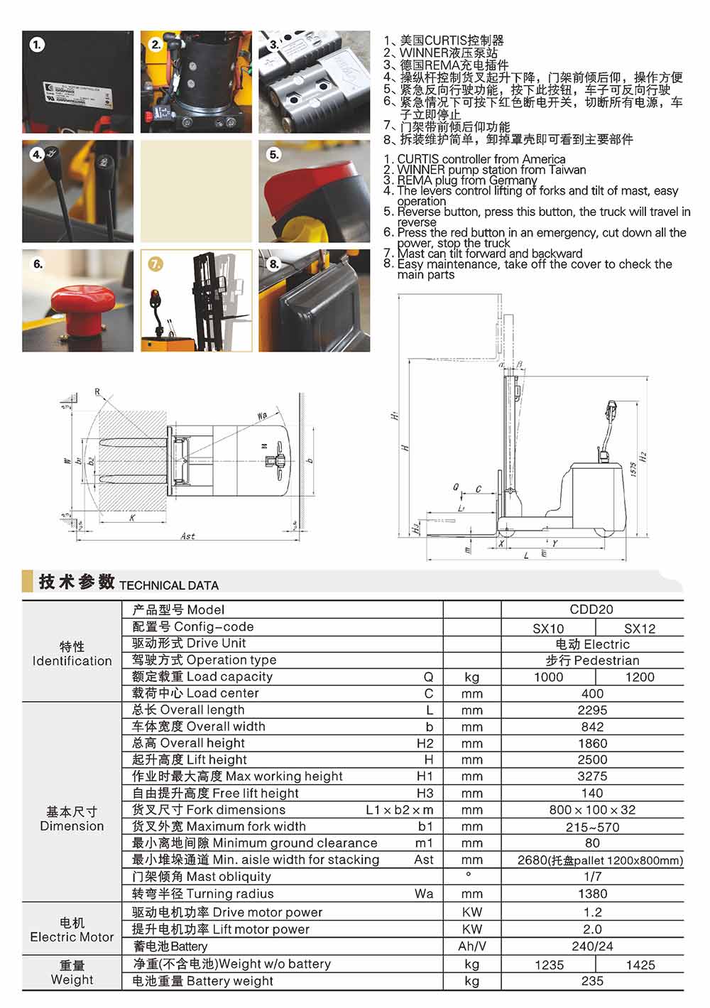 CDDSX平衡重電動堆垛車 (步行式或站駕式)